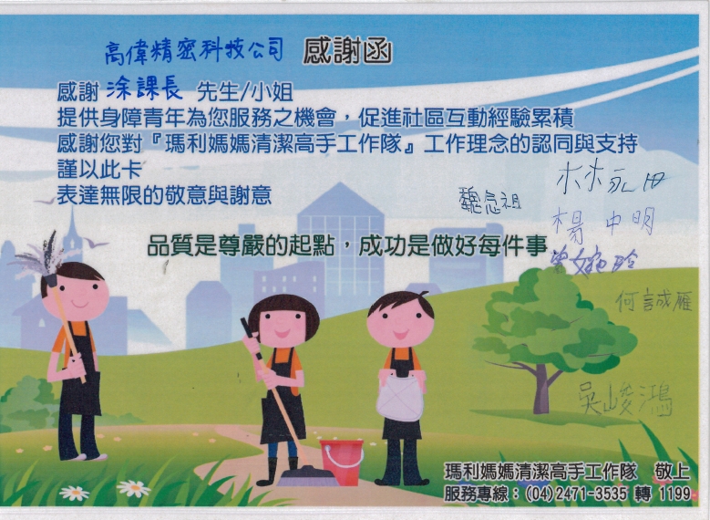 支持身障工作機會 瑪利媽媽清潔高手工作隊